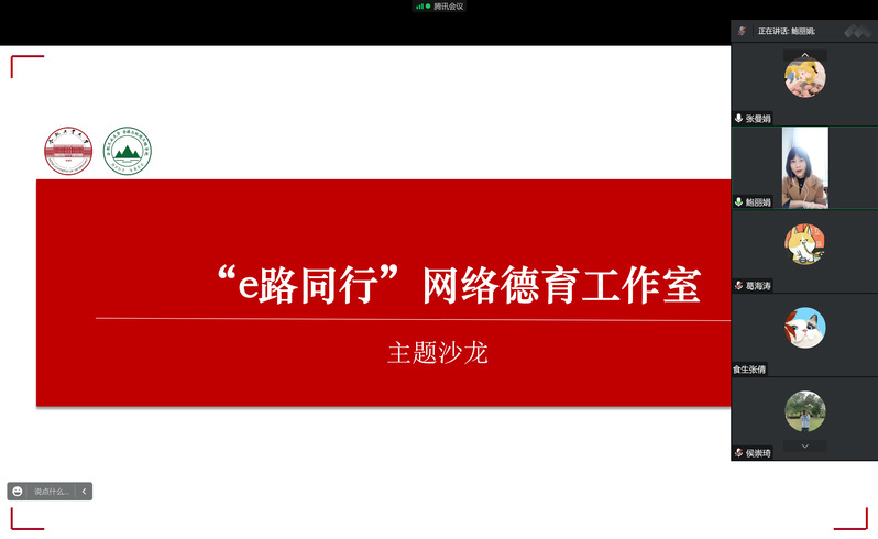 为进一步加强工作室队伍建设,提升网络思政工作能力,10月18日上午,“e路同行”网络德育工作室线上开展“e成长”工作论坛,工作室全体老师参加会议,会议由工作室负责人、365best体育亚洲官网党委副书记鲍丽娟主持。