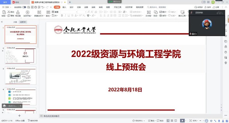 8月18日晚,为协助学生顺利完成返校前准备工作,365best体育亚洲官网开展2022级本科生新生线上预班会,2022级全体新生参加会议,班会由新生辅导员杨子凡主持。
