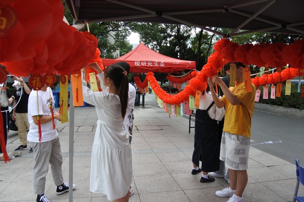 迎着初秋的晚风,猜灯谜活动逐渐拉开了序幕。研会人员精心筹备,搭建帐篷、摆放桌椅、悬挂灯笼、系上谜面,等待着同学们的到来,一同感受中秋文化。