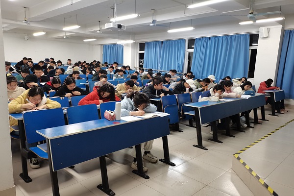 晚自习开始后,各班的学习委员将精心准备好的高等数学测试试卷发给了同学们。拿到试题后,同学们先是大致浏览了一下试题内容,紧接着就投入到了紧张的做题中去了。在同学们做题目的同时,各班副班长们进行监考,以保证周测的真实性与公平性,更好地反映出同学们对现阶段高数基础知识的掌握程度。一小时后,同学们纷纷停下手中的笔,班级学习委员对答题纸进行了回收。学院后期将依托学生会生活学习部对测试试卷进行集中批改,将测试结果反馈给学生个人,并开展试卷的集中讲解和课程答疑活动。周测将每周开展一次。