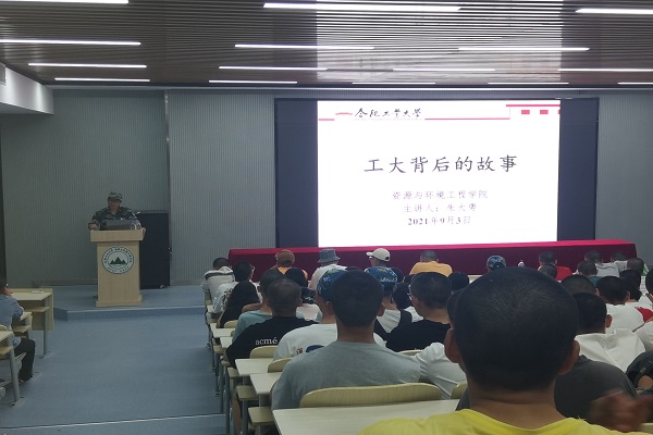 活动中,2021级本科生辅导员朱大勇首先从工大事、工大人、工大情、工大志四个方面为全连新生介绍了工大的光辉历史、杰出校友、校训校风和办学目标,并在过程中向同学们简述了“屯溪路193号的故事”、“主教的故事”、“工大校名的故事”,最后以一封李开复写给刚上大学女儿的信为结尾,希望大一新生们珍惜大学时光、大胆尝试自己的想法,表达对新生的美好愿望,鼓励学生未来能够成为“工程基础厚、工作作风实、创业能力强”的社会领军人才。