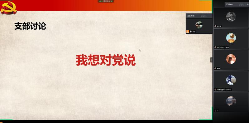 本次讨论会主要分为两个部分,首先是冯杰同学带领大家重温中国共产党的建立过程,通过中国共产党建立的阶级基础、思想基础以及组织基础向大家阐释了党成立的历史必然性;通过“星火燎原”、“中流砥柱”、“改革开放”以及“全面小康”等关键词为大家介绍了党已经走过的99年光辉岁月。99年来,我们取得的一切成就,是一代代中国共产党人与人民一道顽强拼搏、艰苦奋斗的结果。第二部分为讨论环节,党支部的同学们纷纷表达了自己想对党说的话,献上自己对党的生日祝福。