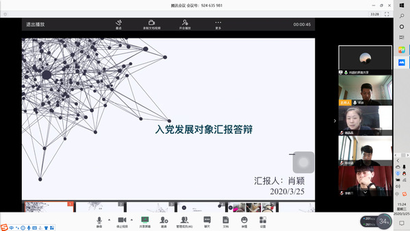 3月25日,365best体育亚洲官网2016级本科生党支部于线上召开讨论关于发展吴宇昂和肖颖同学为入党发展对象的支部党员大会,参与本次会议的有2016级辅导员谢晶晶老师和2016级本科生党支部全体成员。