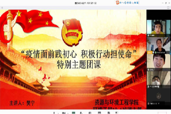 2020年3月8日环境19-1班的全体同学各自在家中以线上联系的方式开展有关疫情的主题团课。