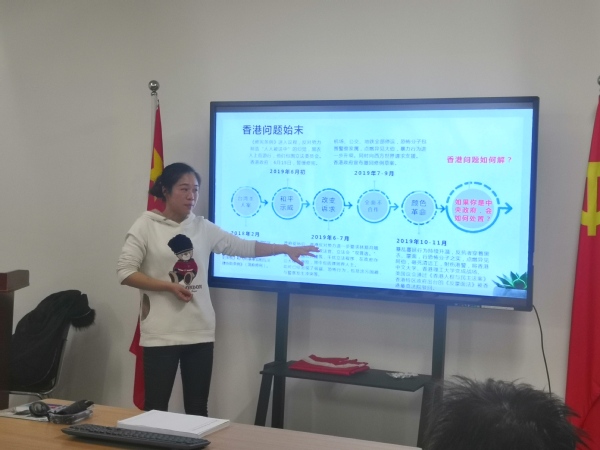 谢晶晶导员先是就近期刚刚结束的2020年考研为开始,介绍了导员所观察的我们学院与专业毕业生去向以及现在的生活状况,告诉我们在人生的岔路口,最重要的是要对自己有清楚的认识,明确自己的目标,做合适的选择,坚定信心,砥砺前行;接着导员谈到了中国与国外的区别,以及国外对国内的看法,以同学们生活中的例子告诉我们,大学教育培养我们的宗旨是德才兼备,以德为先,提醒同学们要加强思想道德建设;会议中心部分,谢晶晶导员就同学们关注的时事热点,香港问题以及莫雷事件,讲解了事件相关的要点,与同学们开展讨论,引发同学们对爱国主义的深思。会议中,谢晶晶导员提议同学们们写下自己做过与爱国相关的事情,加深同学们对爱国主义的重视,对思想建设的重视。