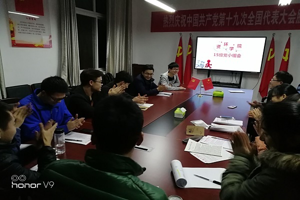为了更好地贯彻落实党支部七项组织生活制度中的会议制度,让支部成员更好的学习和交流十九大精神,资环学院15级地信和勘查二班党小组于2017年11月29日晚在西教309开展第一次党小组会。