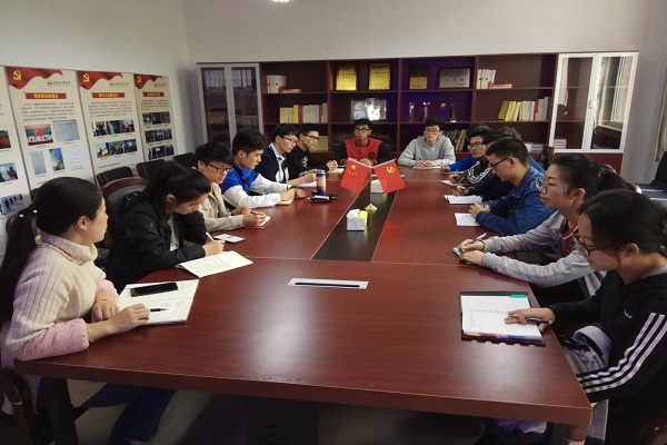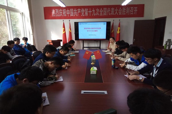 会议开始,谢晶晶导员就前两天进行的对十九大的学习受到安徽新闻和央视新闻联播的事情对大家表示了祝贺,并告诫大家要以此为契机,坚持不忘初心,更加深入的学习十九大精神,并举办更多更好的活动,让自己同党支部一起进步。同时,导员提到了党建带团建的方案,希望以党小组为单位对团支部讲授十九大精神,支部成员也对此表示了同意。最后,在党支部书记王凡超同志的主持下,支部成员对上课时是否要佩戴党员徽章坐在前排表达了自己的意见。一些支部成员同意这个想法,说这种做法会对党员自身会有更好的自身监督作用,能更好的起到先锋模范作用,不过也有一些支部成员有不同意见。最后,由于意见不统一进行了举手表决,最后以少数服从多数的原则通过了这个决议,此决定也会在准备就绪后开始实行。