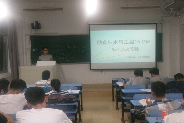 期末备战的号角已经吹响,同学们也纷纷投入到了紧张的复习之中。为了帮助同学们回顾所学知识点,提高对知识的掌握程度。6月29日晚7点,勘查技术与工程15-2班全体同学在班委的组织下,于6教203举行了第十六次周测活动。