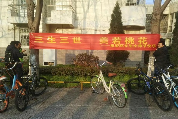 资环学院各班男生为庆女生节使出浑身解数,有的帮女生实现愿望,有的帮女生拿快递还有的录祝福视频……