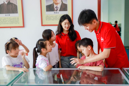 赓续爱国精神,砥砺奋进力量。活动开展过程中,正值七七事变86周年,为培养爱国之情,砥砺强国之志,实践报国之行,7月7日,团队带领小朋友举行了庄重的升旗仪式。伴随着雄壮的《义勇军进行曲》,小朋友和实践团队的成员们庄严肃礼,行注目礼,注视着五星红旗的冉冉升起,此次升旗仪式使小朋友们更加深刻感受民族自豪感,让爱国主义精神在小朋友们心中牢牢扎根,为培养担当民族复兴大任的时代新人奠定了基础。在“红心向党”思政课中,团队成员介绍了卢沟桥那段血与泪的历史,向小朋友们讲述了无数革命先辈英勇抗争的事迹。同时,团队成员小朋友们参观了砂坝村史馆,一幅幅旧照片,一个个老物件,向我们真实地再现了一代又一代砂坝人的接续奋斗的精神,这一代新砂坝人年龄虽小,但也可以感受到今天生活的来之不易,有小朋友说道:“我也要像这些英雄们一样,为我们的国家做出贡献!”