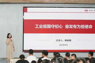 会上,鲍丽娟从学生最关切的问题出发,围绕“一座楼”“两个人”和“奖学金”的三则故事,生动讲述工大人薪火相传、接续奋斗的故事与精神。在七十八载的岁月征程中,一代代工大人始终秉承“工业报国”理想,践行“工业报国”之志,发扬“艰苦奋斗、自强不息、追求卓越、勇攀高峰”的光荣传统,彰显着工大人浓浓的工业报国情怀。精彩的讲座增进同学们对学校的认识,增强同学们对专业的自豪感和荣誉感。最后,鲍丽娟留给了同学们两个问题“四年里,我希望大学给予我什么?”“四年后,我希望能留给母校什么?”,以此来激励同学们在今后四年的大学生活里牢记初心使命,坚定理想信念,不断踔厉奋发,勇毅前行,掌握扎实学识,提升个人素养,用毅力和汗水亮出青春色彩,争做时代新人。报告内容丰富,会场气氛活跃。会后,同学们纷纷表示要向榜样看齐,不负青春,不负韶华。