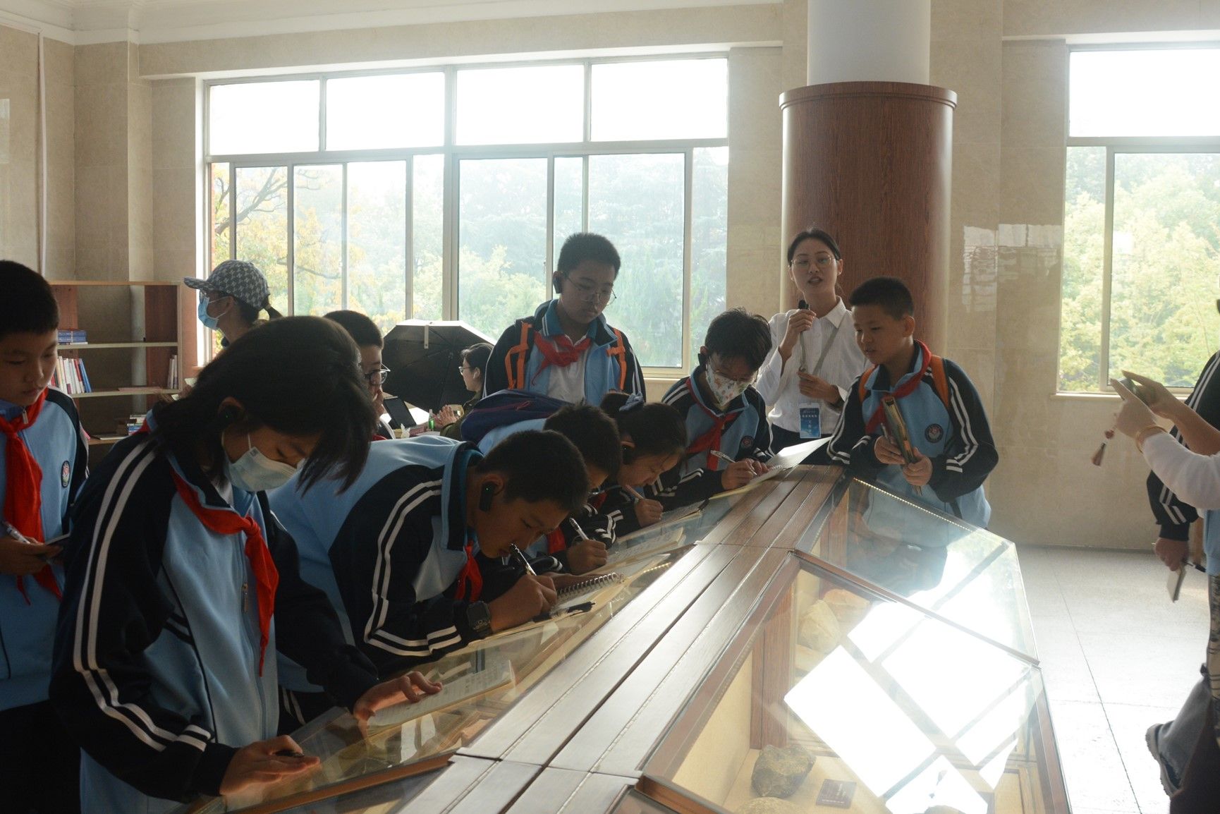 20余名社区初中生在研究生讲解员的生动解说下,分别参观了史前生命厅、地球物质厅、地球厅等展厅,近距离观看了化石、矿物等地质标本藏品。支部成员通过实物演示、PPT等多元化形式展示,向社区小朋友宣传了生态环保意识与地质科学知识,启蒙了他们积极探索、勇于创新的科学精神,在孩子们心中播下一颗科学的种子,同时鼓励他们努力学习科学知识,从小树立科学报国的远大志向。