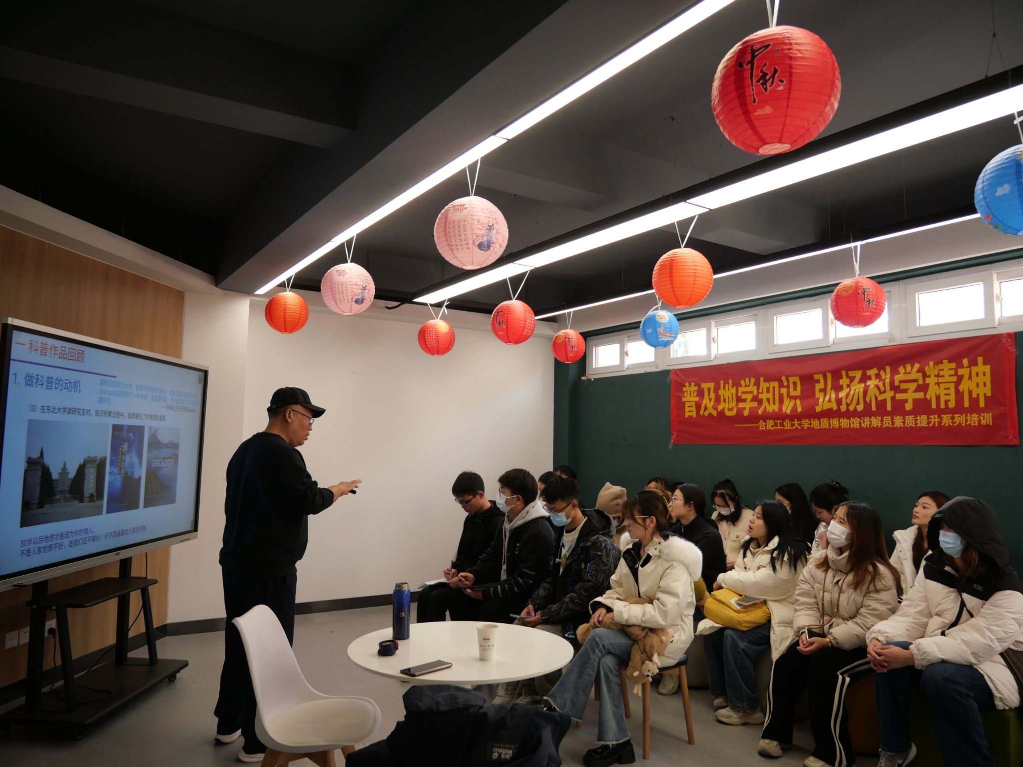为进一步提升校地质博物馆科普服务水平,提高学生讲解员综合素质,12月1日,365best体育亚洲官网邀请《矿物岩石地球化学通报》“潮声激越”栏目专栏作家宋建潮博士在屯溪路校区5号学生社区沙龙空间为全体学生讲解员进行地学科普培训。