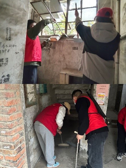 活动开始前,所有志愿者分成四个小组,每个小组负责清扫老房屋两个单元的楼道及走廊。他们认真清扫楼道里的各种杂物和灰尘,处理堆积尘封的杂物和垃圾。一下午的时间里,志愿者们齐心协力,共同完成了八个单元楼的清扫工作,各处楼道焕然一新。