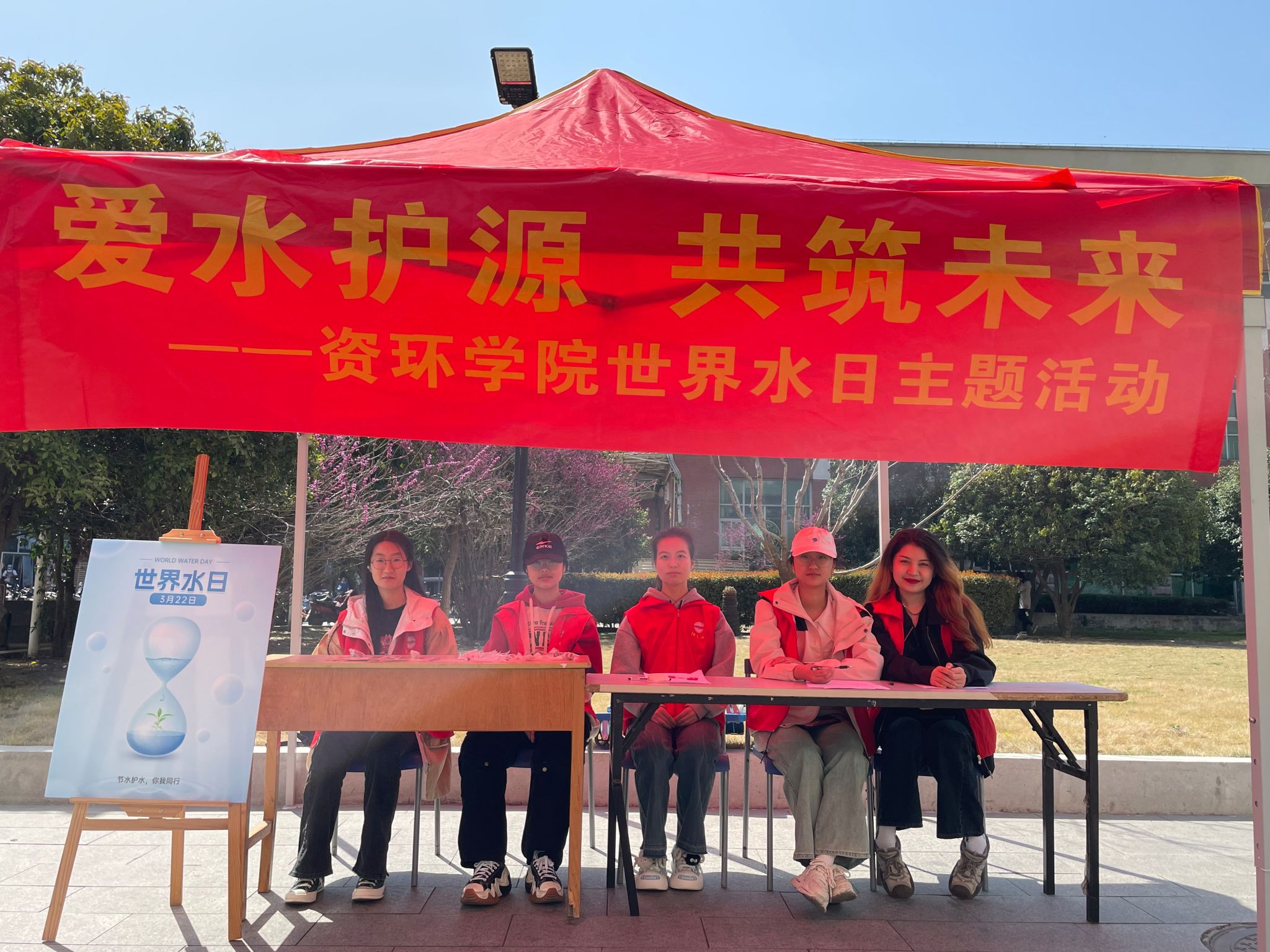 为迎接第32个世界水日,提高师生节水意识,3月22日,365best体育亚洲官网阳春社在屯溪路校区德园食堂广场开展“爱水护源,共筑未来”世界水日主题宣传活动。