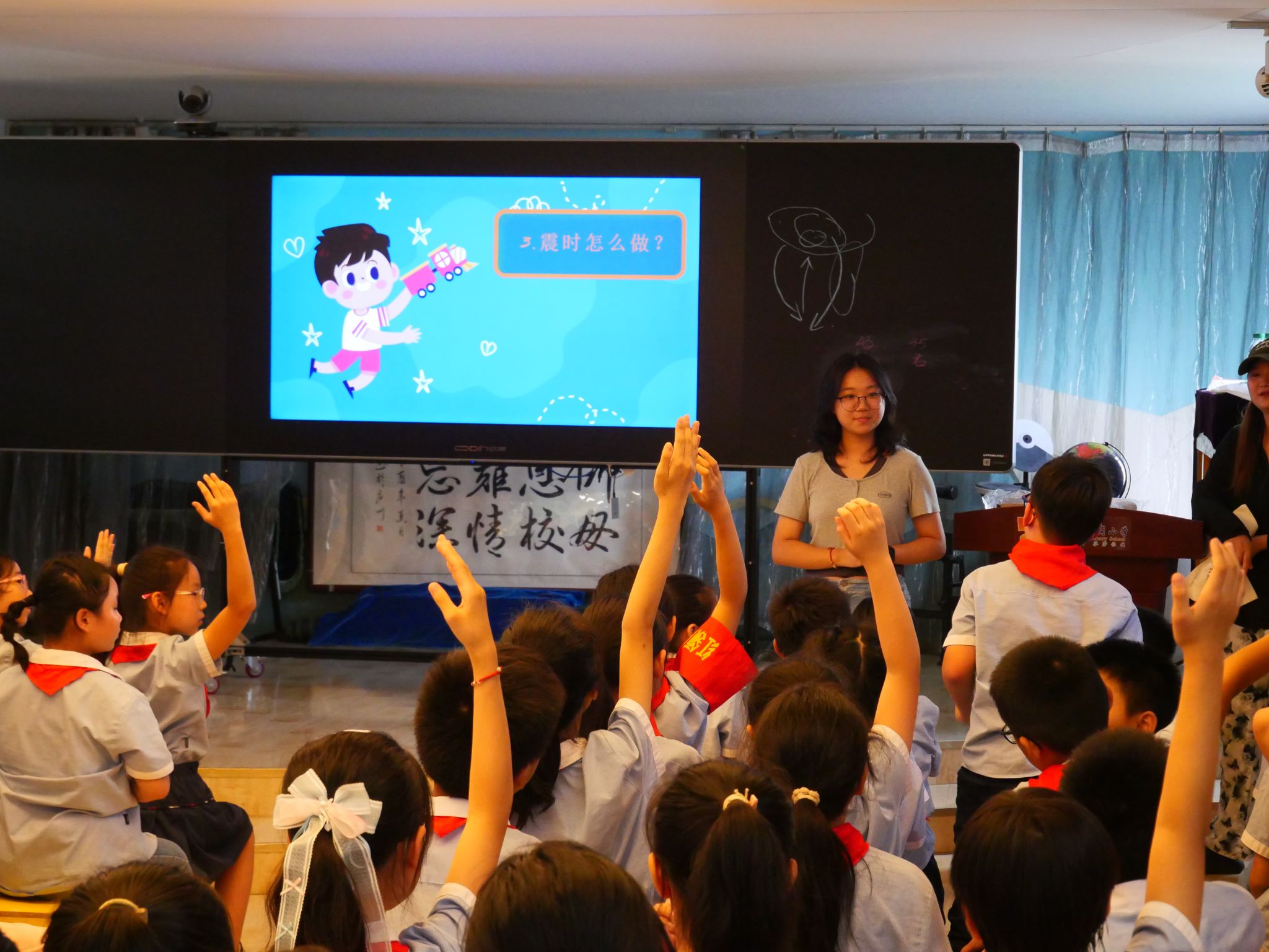 课堂上,同学们结合图片视频、互动交流等多种形式,带领小朋友生动领略宇宙行星、地球变迁、地形地貌、地质现象等自然奥秘,并通过科学实验、标本展示,让孩子们直观感受到地球科学的魅力。同时,志愿者还为小学生普及了地震、台风等自然灾害知识,教授防范和应对自然灾害的措施,以提高孩子们的安全意识和自我保护能力。整节课,同学们频频提问,给小朋友布置小任务,激发大家爱科学、学科学的兴趣,现场气氛热烈,掌声不断。