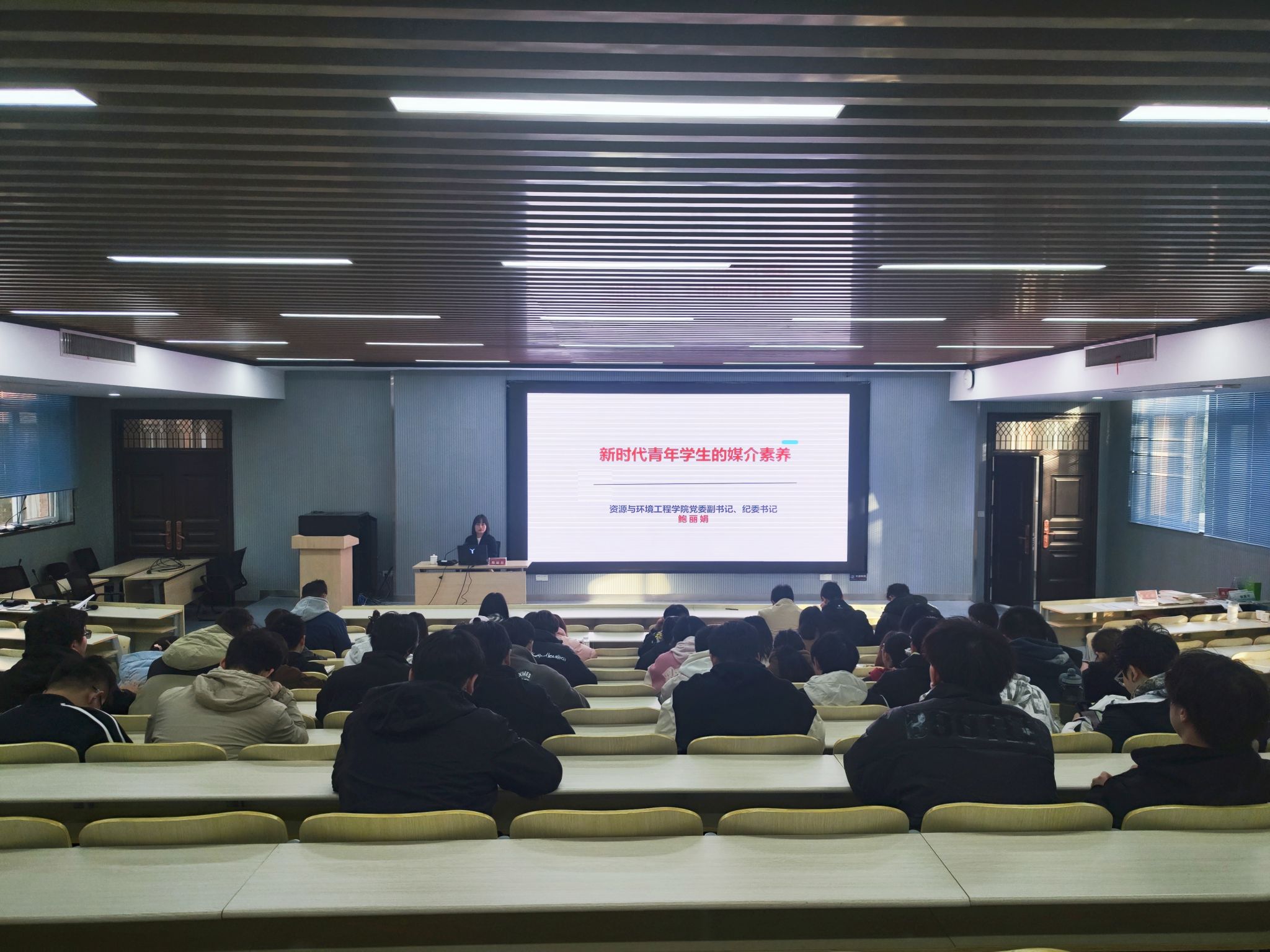 鲍丽娟以“新时代青年学生的媒介素养”为题,从当前热点网络话题引入,介绍了互联网以及手机网络使用的发展历程,分析了网络舆论生态环境的变化,告诫同学们要学会鉴别网络信息真伪、减少网络危害、正确科学地使用网络,并带领学员们一起学习了习近平总书记关于网络文明的重要论述。她强调,党校学员要发挥模范带头作用,自觉规范网络行为,遵守网络文明,培育网络道德风尚,担当起新时代学生党员的责任和使命;要坚定理想信念,厚植爱国主义情怀,秉承工业报国之志,将个人成长成才与全面建成社会主义现代化强国、实现中华民族伟大复兴的中国梦紧密联系起来,在新时代新征程中贡献青春力量。