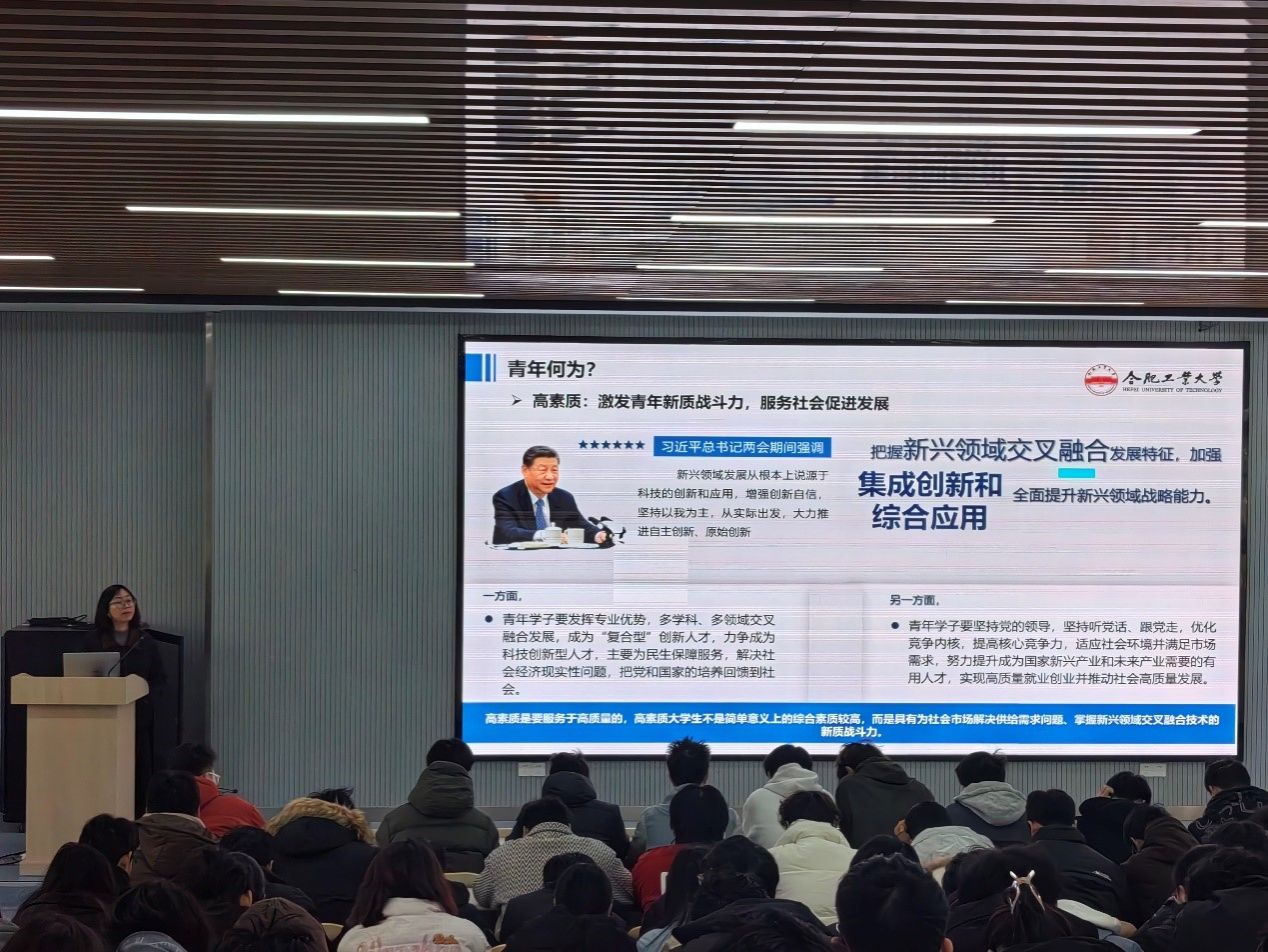 班会上,辅导员王锐琴围绕“回望”、“耕耘”和“征程”三个部分展开。首先,王锐琴以中国载人航天、中国高铁两大“国之名片”为切入口,带领同学们回顾了我国科技发展的艰辛历程和辉煌成就。随后,王老师介绍了学校教师在专业前沿的科研成果,杰出校友在行业的斐然建树,以及青年学生在科创赛事中的优异表现。最后,王老师通过青年榜样的典型事迹,生动讲述了学长学姐点滴科创故事,并号召同学们以科学家精神为指引,将科学梦融入学习动力,把青春梦汇入中国梦,不负时代期许,在科技强国征程中书写青春华章。