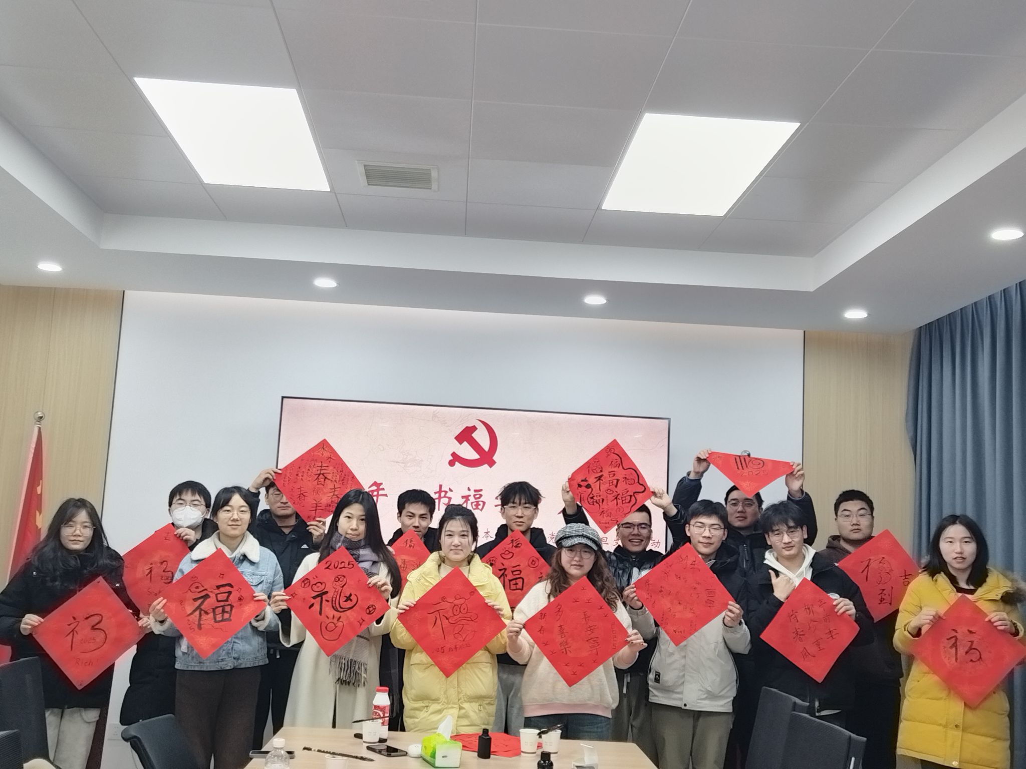 本次活动巧妙融合传统文化与党建工作,以笔墨福字传递对新年的祝福。活动中,同学们纷纷执笔蘸墨,挥毫书写“福”字,并互相展示作品,表达对新年的美好期待和走好新征程的坚定信念。