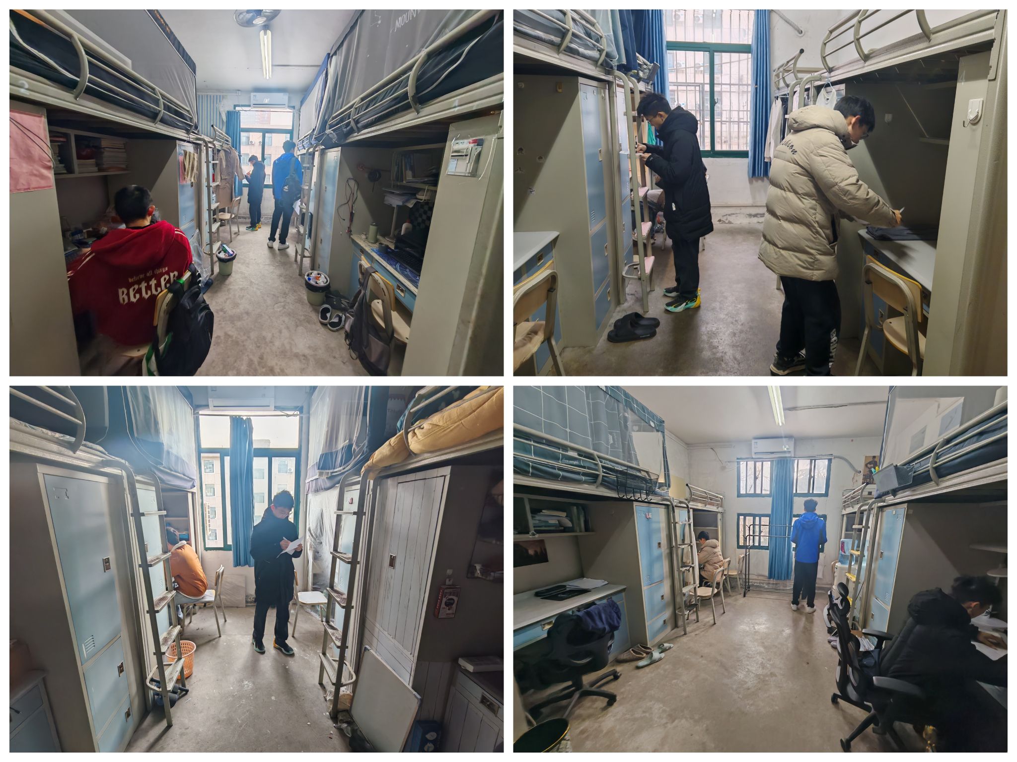 检查人员分为五个小组,深入学院各年级本科学生宿舍开展全面细致的走访,重点检查宿舍用电安全、消防设施、内务卫生等情况。检查过程中,辅导员提醒学生重视宿舍消防安全,遵守宿舍安全管理规定,严防安全事故发生。同时,辅导员还关心同学们的返乡动态,叮嘱同学们在离校前务必关闭宿舍水电、门窗、做好宿舍卫生清洁等。