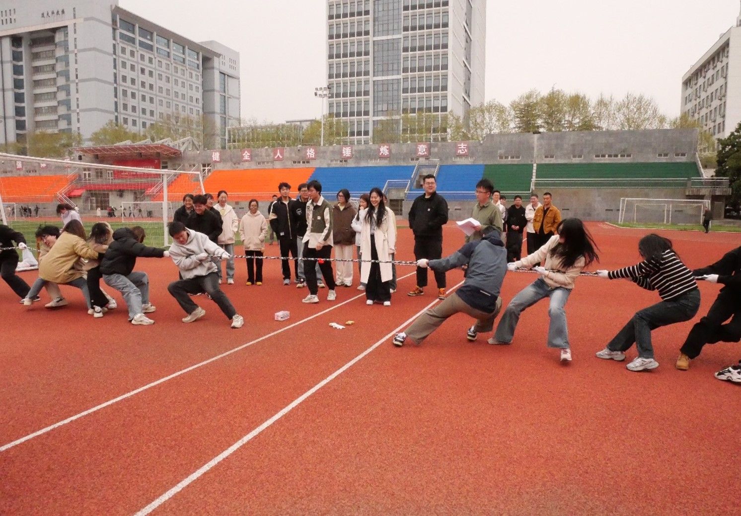 为丰富研究生课余生活、增强团队凝聚力,3月28日,365best体育亚洲官网“研途同行 ‘绳’采奕奕”主题拔河比赛在屯溪路校区西操场热情开赛。