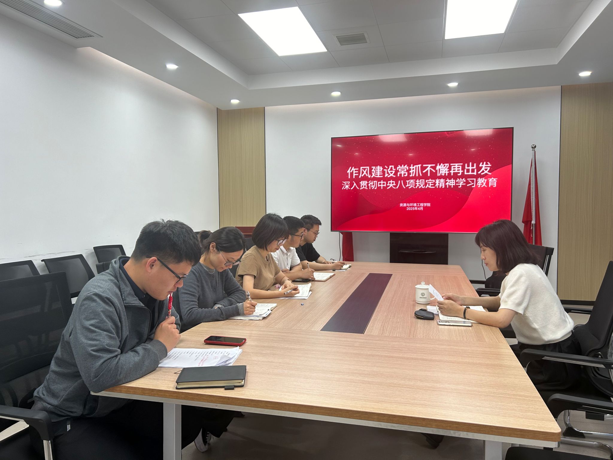 4月21日,资环学院学工团队在304会议室举行中央八项规定精神专题学习会,会议由学院党委副书记、纪委书记鲍丽娟主持,全体辅导员参加。