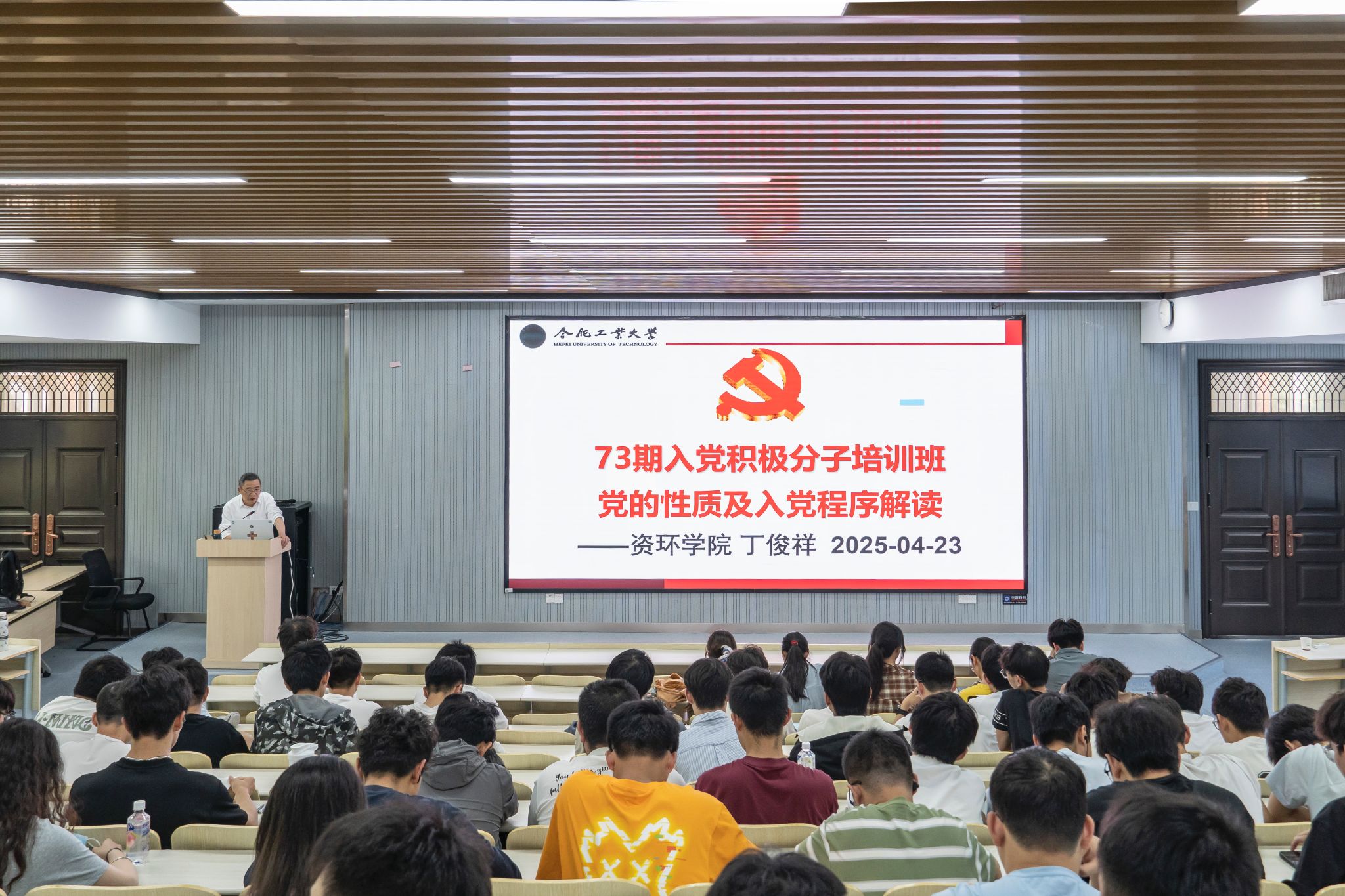 4月23日,365best体育亚洲官网第73期入党积极分子班在西教301报告厅开展专题党课,邀请学院原党委副处级组织员丁俊祥主讲,第73期入党积极分子全体学员参加学习。