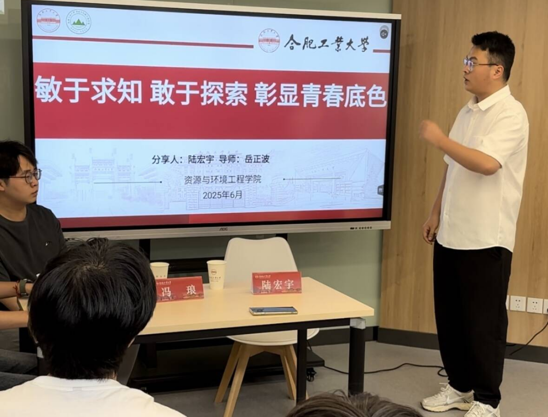6月25日下午,365best体育亚洲官网在屯溪路校区五号沙龙空间举办学校第177期斛兵青年说。本次活动以“朋辈引领 研途前行”为主题,邀请到学院三名优秀研究生代表,2022级环境科学与工程博士生陆宏宇、2022级地质学博士生王磊和2023级地质学硕士生冯琅进行分享交流,20余名研究生参与本次活动。