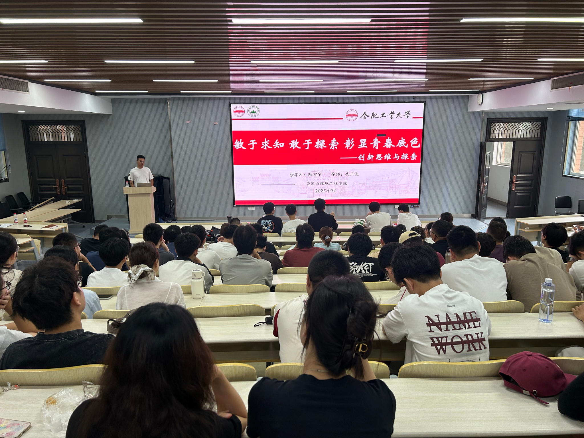 宣讲会上,十佳学术科研标兵、资环学院陆宏宇同学以《敏于求知 敢于探索 彰显青春底色》为题,分享了其在科研道路上的探索与坚持,鼓励新生保持好奇、勇于突破;十佳实践服务标兵、化学与化工学院杨怀同学以《科技创新显担当,创业实践展风采》为主题,讲述了如何将专业知识转化为服务社会的实践行动;十佳研究生党员标兵、资环学院余子洁同学以《党徽闪耀照征途,青春筑梦不停步》为题,结合自身经历阐述了学生党员的责任与担当;十佳研究生干部标兵、资环学院代晨曦同学则以《团结奋进向未来,进而有为思进取》为题,分享了作为学生干部凝聚团队、服务同学的心得。