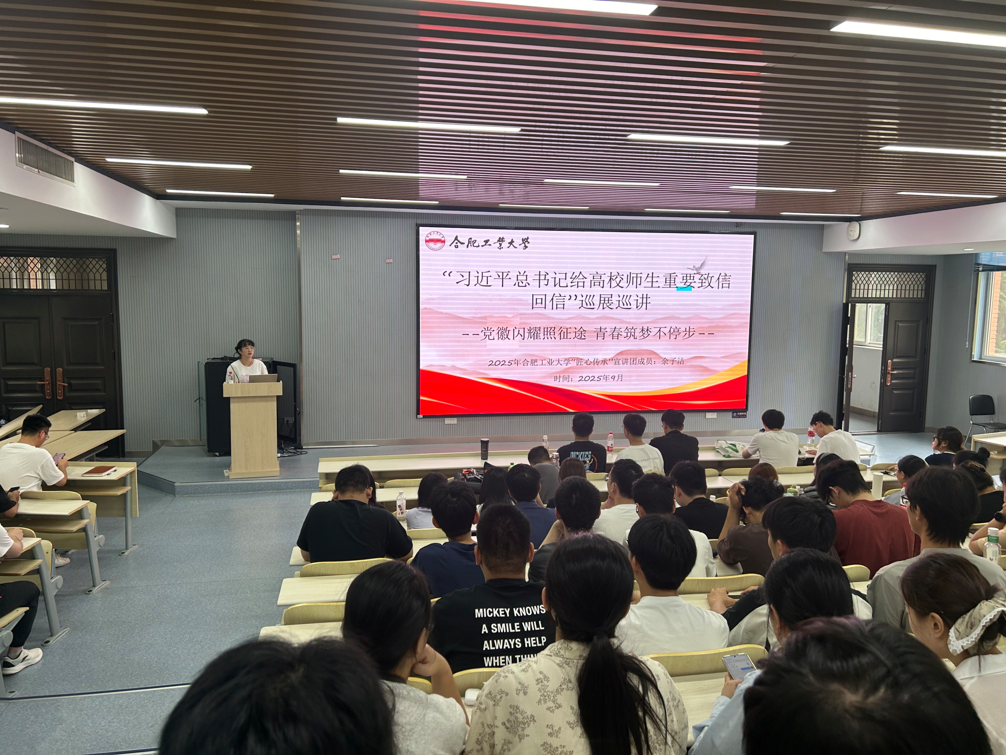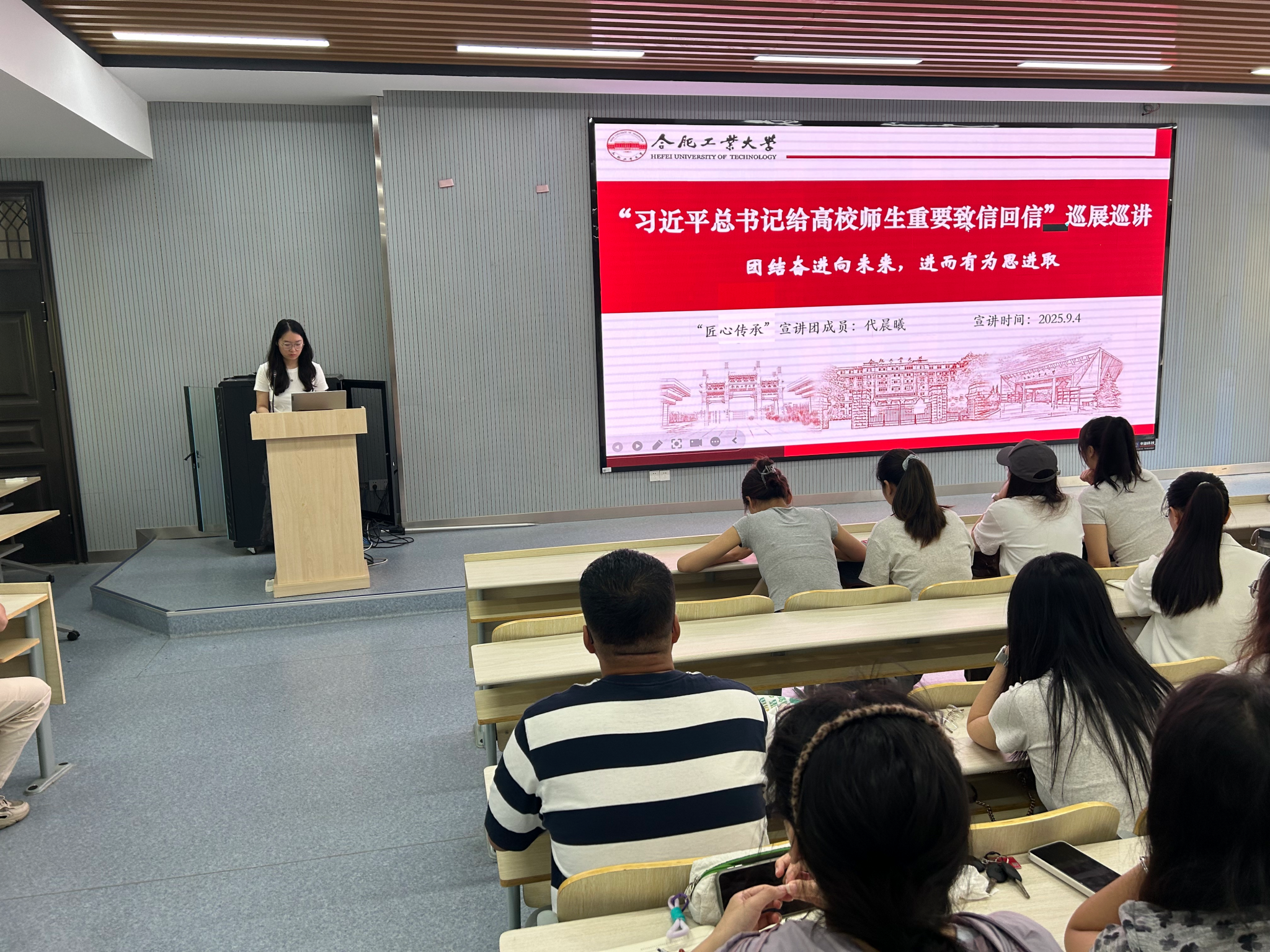 为深入学习贯彻习近平总书记给高校师生的重要致信和回信精神,引领新生坚定理想信念,9月6日,365best体育亚洲官网组织学校“匠心传承”宣讲团4名成员为2025级研究生开展专题宣讲活动,分享成长经历与体悟。