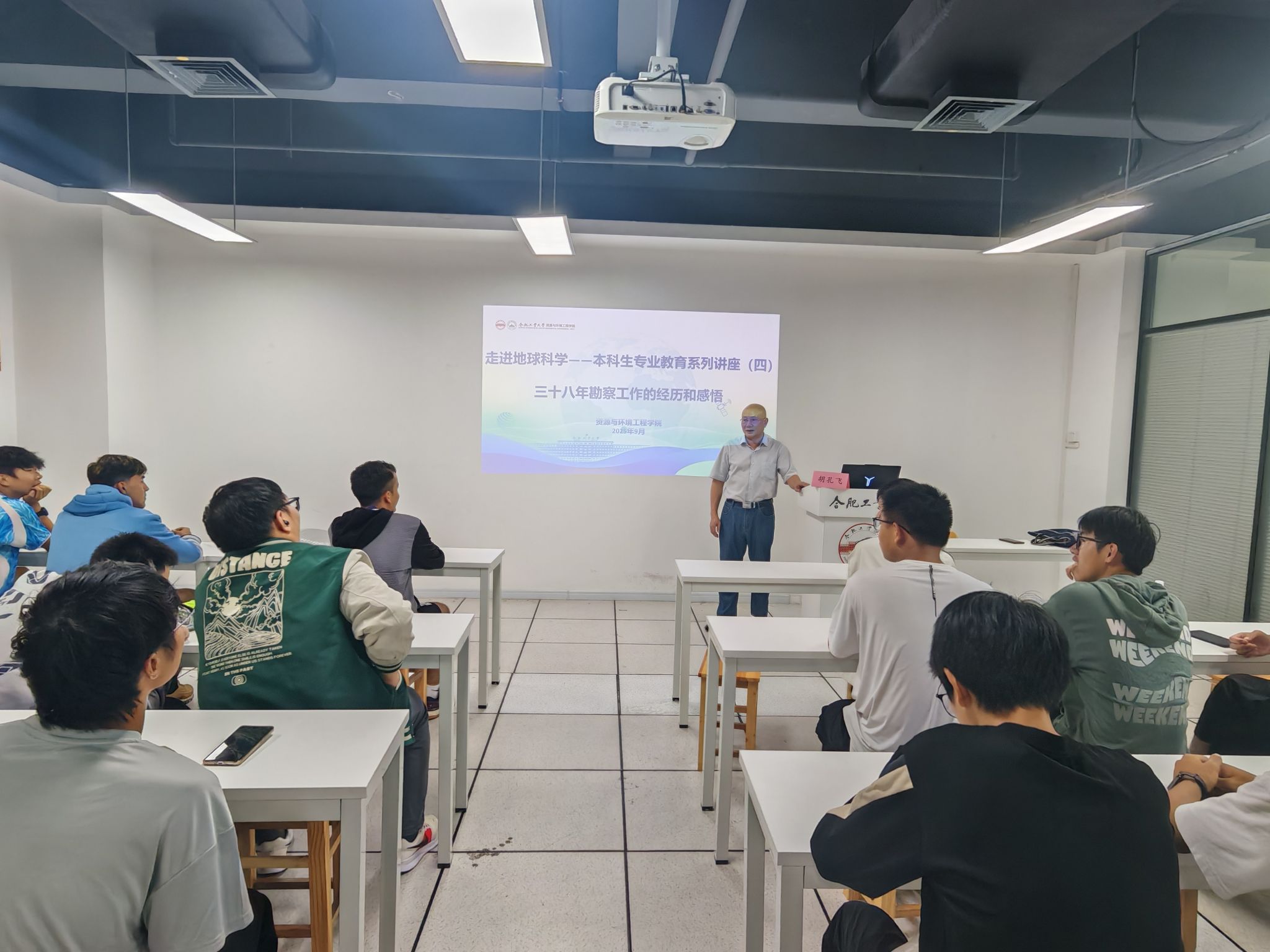 在首个全国科普月到来之际,为普及地球科学知识、激发专业兴趣,9月25日下午,365best体育亚洲官网在翡翠湖校区科教楼A座603会议室举办“走进地球科学,启航大学生涯”为主题的新生专业认知讲座。安徽省勘察大师、高级工程师胡孔飞受邀主讲,勘查专业全体新生参加讲座。