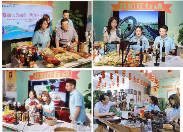 登上直播平台赞颂高台,化身特产大使直播带货科技赋能。7月30日,团队指导老师王冠英和赵亦歆、韩祯阳两位同学来到高台天宇文化旅游公司基地,登上了高台县直播带货平台,并特别邀请高台县副县长赵东哲担任助力嘉宾,通过小小屏幕引领乡村振兴“新潮流”。下午四点,直播准时开始。赵亦歆和韩祯阳两位同学首先对高台县的名胜古迹、人文景观、民俗风情等娓娓道来,使观众仿佛看到了大漠孤烟直的万里戈壁与画船听雨眠的小桥流水,听到了红西路军在这片土地上的金戈铁马与九层之台上悠悠诵经声,感受到了“河西粮仓”的美誉与丝绸之路的繁华。宣讲结束后,王冠英老师和两位同学化身“带货员”,只见他们面前有红艳艳的高台辣椒、黑里透红的高台晒醋、晶莹剔透的祁连冰酒,还有被称为“中国最古老的方便面”的高台面筋。直播过程中,师生化身特产大使,妙语生花,用生动的语言将传统西游故事的文化元素与今天带货的农产品相结合,将线椒的鲜红、油香,面筋的绵柔劲道、鲜美可口展露无遗,让屏幕外的粉丝们看着垂涎三尺,让大家在历史传承中体验高台经典饮食文化。