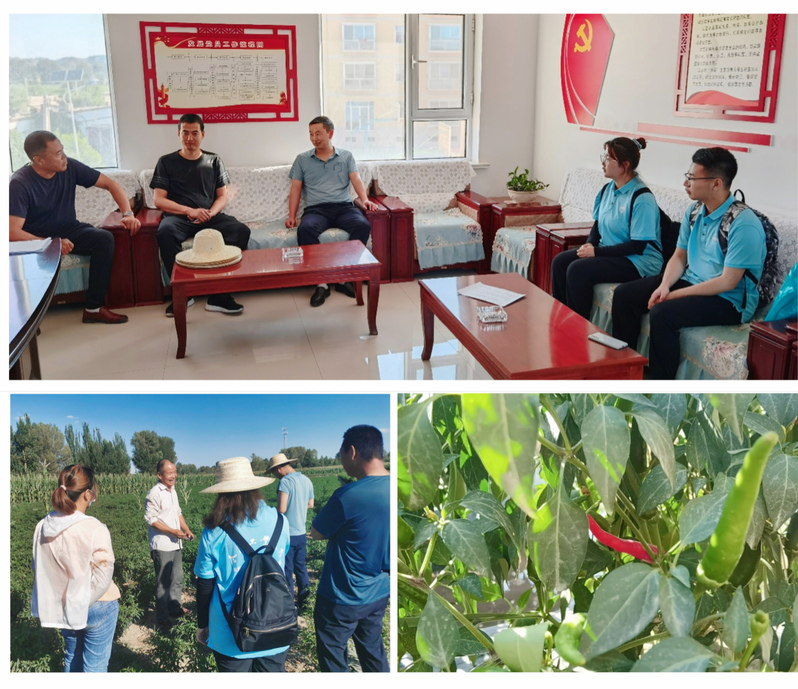 深入田间群众调研访谈,聚焦特色产业助力脱贫攻坚成果。7月28日,队员们走进高台县合黎镇玉米田和辣椒田,深入访谈当地村民,探寻产业脱贫的源头。在走访实践中队员了解到,合黎镇以绿色有机辣椒名片为支撑,以发展特色农业产业为切入点,在张掖日照充足,昼夜温差较大等得天独厚的自然资源条件下,大力发展以辣椒和玉米为主的特色农产品种植,促进群众增收,推动农村经济发展,与以往的自给自足种植不同,合黎镇商业化规模种植、订单式预售模式等都是脱贫攻坚时期对农业进行商业化改革的成果。田间调研时,从对几位村民的调研采访中了解到,合黎镇充分利用县、镇开展新型职业农民培训、农技培训的有利时机,发动技术骨干组成“党员服务队”对全镇村民进行了全覆盖式的业务技能培训。村民濮瑞兰主动邀请团队成员前往农场参观绿色养殖,了解当地的种植产业发展情况,调研团队主动协助整理种植技能培训材料,分门别类打包各类信息,帮助当地农户进一步掌握相关技能知识。