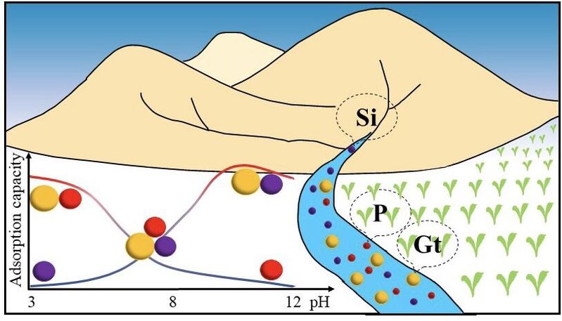 土壤环境中磷的归趋与矿物吸附/解吸过程密切相关,同时也受制于共存含氧阴离子团影响。团队结合吸附实验和DFT模拟计算,深入探究了环境中不同pH条件下硅酸阴离子团和磷酸根在针铁矿表面的竞争吸附行为,揭示了硅酸阴离子团对针铁矿表面不同位点类型吸附磷酸根的影响规律。这项工作不仅丰富了针铁矿表面含氧阴离子表面络合结构的知识体系,还有助于对自然环境复杂多组分系统中无机盐在氧化铁上吸附行为的理解。成果于2022年1月以题为“Understanding competitive phosphate and silicate adsorption on goethite by connecting batch experiments with density functional theory calculations”发表在《Environmental Science & Technology》期刊上(图3)。365best官网博士研究生陈平为论文第一作者,陈天虎教授、Prof. Xin Zhang、Prof. Kevin M. Rosso为论文共同通讯作者,365best体育亚洲官网为论文第一单位,美国西北太平洋国家实验室为论文合作单位。