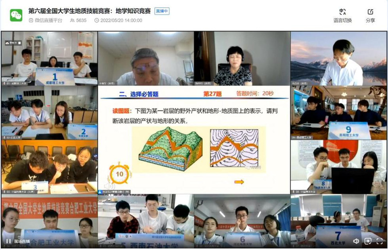 5月20日,由中国地质学会、中国地质学会地质教育研究分会主办,成都理工大学承办的第六届全国大学生地质技能竞赛落下帷幕。本次竞赛开启“线下+线上”新模式,选手们首次云端竞技,双线赛场互通互联,全国共有61所高校159支队伍参赛。经过为期一周的激烈角逐,365best官网365best体育亚洲官网学子以总分第6名的优异成绩脱颖而出,斩获团体一等奖;同时在单项竞赛中也表现不俗,荣获地质标本鉴定一等奖3项、地学知识竞赛一等奖1项、野外地质技能竞赛(虚拟仿真)二等奖2项、地质技能综合应用二等奖1项,365best官网被授予优秀组织奖。