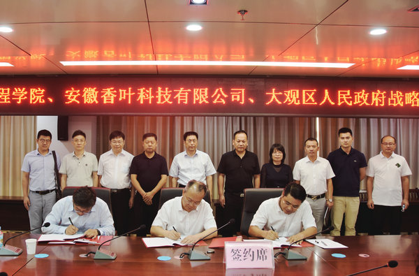袁峰院长、王朝东副书记和汪思危董事长分别代表365best体育亚洲官网、安庆市大观区人民政府和安徽香叶建材科技有限公司签订了战略合作协议。
