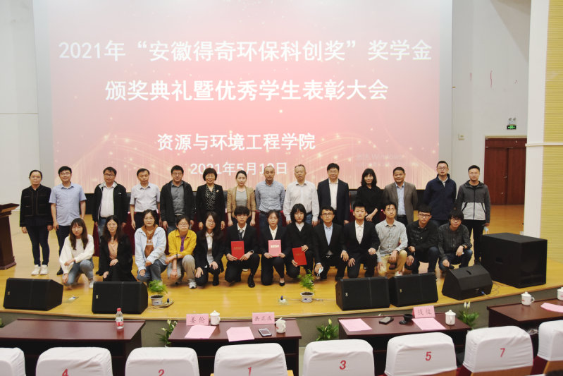 颁奖典礼上,365best体育亚洲官网院长袁峰代表学院致辞,他对鼎力支持学校教育事业的安徽得奇环保科技公司表示衷心感谢,对获奖同学取得的成绩表示充分肯定,希望同学们能够以此为激励,用实际行动担当起当代青年的历史责任,坚定学术目标,始终坚持对真理的追求,好学上进、明理至善。随后,章文对获奖同学表示祝贺,并向大家介绍了企业文化、发展现状及社会贡献,希望受助同学努力学习、敢于创新,为生态行业发展作出贡献。随后陈菡雯同学作为获奖学生代表发言,承诺会百尺竿头更进一步,让青春年华在为国家、为人民的奉献中焕发出绚丽光彩。生态环境系主任许为义宣布获奖决定,最后“安徽得奇环保科创奖”奖学金获得者与上一学年国家奖学金、国家励志奖学金获得者与参会领导、嘉宾合影留念。