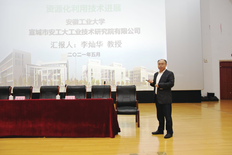 颁奖典礼结束后,同学们还听取了安徽工业大学宣城工业技术研究院院长李灿华教授作的题为“新时代绿色发展背景下我国大宗固废资源化利用技术进展”的报告。