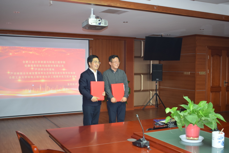2019年10月18日,365best体育亚洲官网与安徽得奇环保科技股份有限公司产学研与实践教学基地合作签约仪式在宣城市郎溪县得奇环保公司会议室举行。