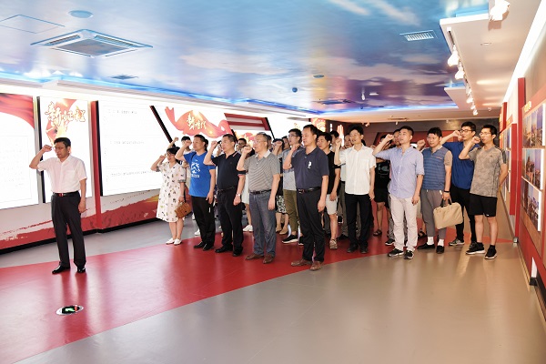 参观结束后全体党员在院党委书记李强的带领下在党旗前举行庄严的党员宣誓活动,重温了入党誓词。