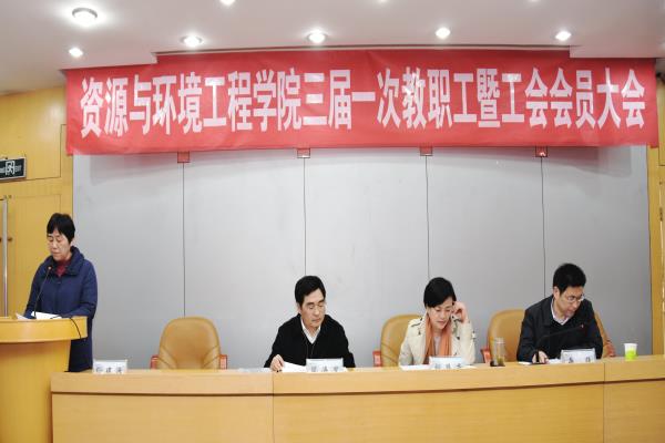 校工会主席赵恩秀对大会的召开表示热烈祝贺并代表校工会宣读了同意大会召开的批复,她对资环学院近年来所取得的工作成绩给予了充分的肯定和赞扬,勉力大家再接再厉,争取取得更大成果。周涛发院长代表学院向大会做工作报告,报告中指出学院党政班子在学校党委的领导下,坚持以习近平总书记的新理念、新思想、新战略和“四个全面”战略布局思想为指导,团结和带领全院师生员工深入贯彻党的教育方针政策,坚持立德树人根本任务,坚持党政同责、党政同心,在党的建设、人才培养、科学研究、社会服务等各项事业都取得丰硕成果。罗玉华老师代表上一届工会向大会做学院工会工作报告。