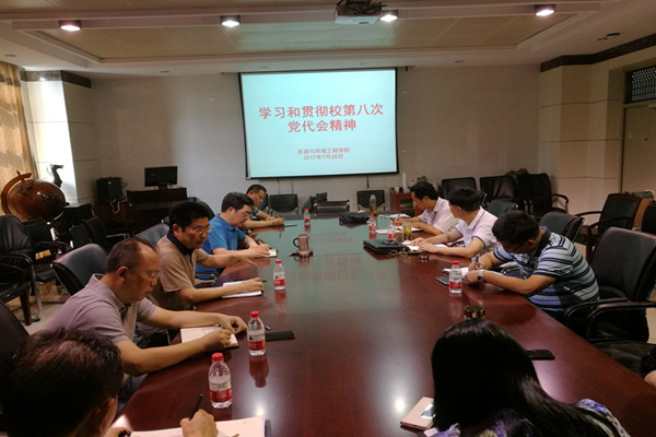 日前,学院党委统一印发第八次党代会有关材料分发全体党员,要求全体党员认真学习;院党委组织召开了院班子中心组扩大会议,传达第八次党代会召开情况,重点学习"两委''工作报告,把思想统一到学校八次党代会精神上来,力量凝聚到建设国际知名研究型高水平大学的目标上来。学院广大师生以实际行动落实党代会精神,以饱满的精神状态投入学院事业发展工作中去,在专业认证、本科教学审核性评估、学位点申报、暑期社会实践等工作中,充分发挥广大党员干部、骨干教师的积极性和主动性,为建设研究型学院,创建"一流"学科多做贡献。