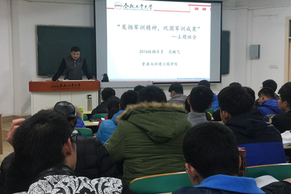 “发扬军训精神,巩固军训成果”主题班会上,辅导员带领学生们一起回忆了军训中的点滴生活,分析了军训中的收获与不足,学生们就军训中最难忘、最有趣的事进行了分享,并就如何将军训精神落实到大学生活的各个方面进行了讨论。此外,辅导员针对早操、晚自习、课堂、晚归、寝室安全卫生等方面存在的问题向学生们进行了通报,勉励全体学生应珍惜大学时光,合理规划时间,不忘初心、继续前进。