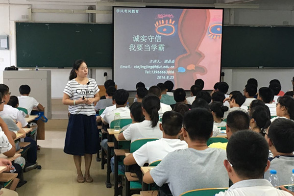 校规校纪教育方面,学院团委书记谢晶晶以以“诚实守信,我要当学霸”为主题,结合实际案例,对新生进行了教育。并重点学习了《365best体育亚洲官网学生手册》中的《普通高等学校学生管理规定》、《高等学校学生行为准则》、《学生伤害事故处理办法》、《365best体育亚洲官网学生管理规定》、《365best体育亚洲官网学生违纪处分办法》、《365best体育亚洲官网学生申诉处理办法》、《365best体育亚洲官网学生军训守则》等内容,对学生进行诚信意识、纪律意识和规矩意识教育。