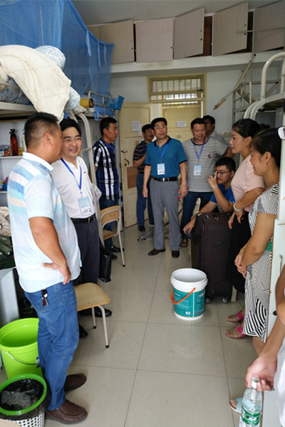 院领导、辅导员深入学生宿舍方面,学院领导班子全部成员在2016级新生辅导员的带领下,不顾高温酷暑,深入学院新生宿舍,探望了正在宿舍里收拾行李的新生及家长,并与他们进行了亲切的交流。院长周涛发和党委书记李强等关切地询问学生们对学校的印象如何,以及对学院有什么样的期待等,并特别叮嘱新生要注意人身和财产安全。此外,新生辅导员坚持每天深入新生宿舍,与新生进行交流,关心解决新生的实际问题。