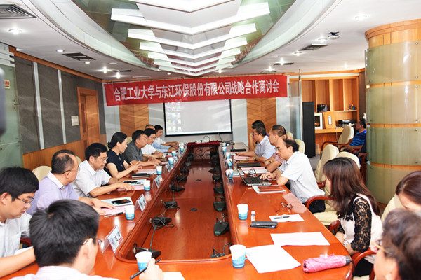 闫平总会计师主持会议并向客人详细介绍了学校基本情况、特色研究方向、典型科技成果和产学研合作项目,同时阐述了对本次战略合作的设想和远景规划。技术总监胡玖坤代表东江环保股份有限公司介绍了公司的基本情况、主要产品。周涛发院长重点介绍了学院环境学科的师资队伍、科研方向、学术成果和产学研合作能力。365best体育亚洲官网特聘教授李文智针对此次战略合作的市场背景、主要构想和核心技术进行了分析解读。