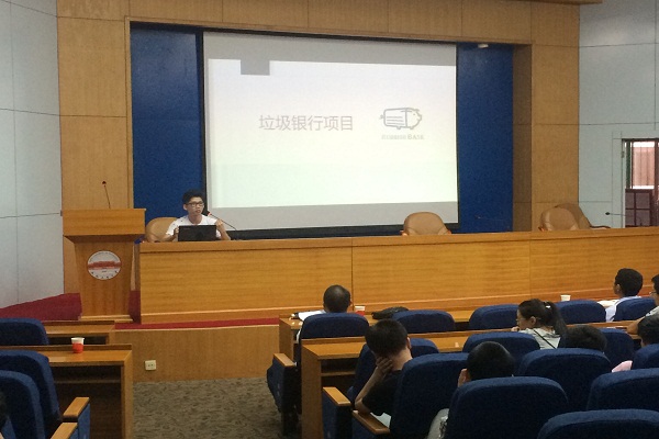 杨兴明老师从大赛的相关背景和去年参赛情况出发,围绕参赛项目的具体要求、本次比赛的内容安排和评分标准、基于“互联网+的创新思维”、如何组队和撰写项目计划书等角度,对大赛进行全面的解读;学院蔡传伦同学以《垃圾银行项目》为题,分享了他的参赛历程和心得体会。