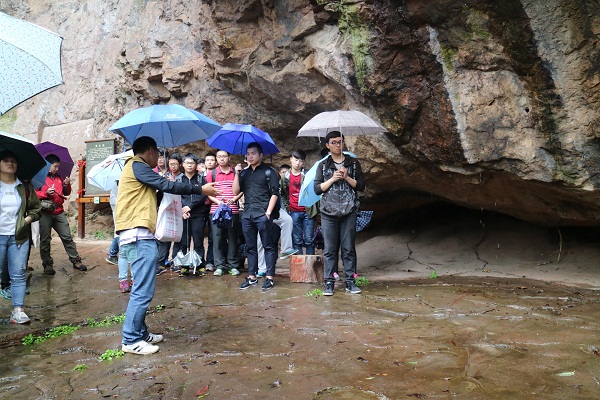 浮山国家地质公园是一座白垩纪时期的古火山,由富钠、钾的火山岩组成。遗存下来的火山口、火山钟、火山渣(浮石)及溶岩流向,龟裂纹路和断层裂隙,均为全国罕见。在活动过程中,365best体育亚洲官网带队老师讲解和分析了景区内破火山口、火山岩洞穴、火山岩层理的形成原因,介绍了不同类型凝灰岩的鉴别方法以及各种矿物的鉴定特征,并用提问的方式引导学生将书本上的知识与野外地质现象联系起来,激发了同学们对专业知识的兴趣,学会了怎样将理论知识运用到生产实践中。学院党委副书记顾安祥老师勉励实验班的同学们应该勤于思考,刻苦学习,将来真正地成为社会的英才。