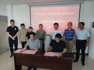 共建交流座谈会上,岳正波介绍了学院的办学背景及专业优势,依托学院优势资源及发展实际需求,表达了在加深人才就业、科技创新、校企培养、资源共享等多领域的合作意愿,同步搭建好党建联建沟通桥梁,促成党建、科创双向引领融合发展。交流座谈后,在全体与会人员见证下,学院与安徽百帮环境签署了“实践教学基地”协议。实践教学基地的落成,将大大发挥校企协同育人作用,进一步推进科研成果转化,通过优势互补资源共享,实现校企双方的合作共赢。