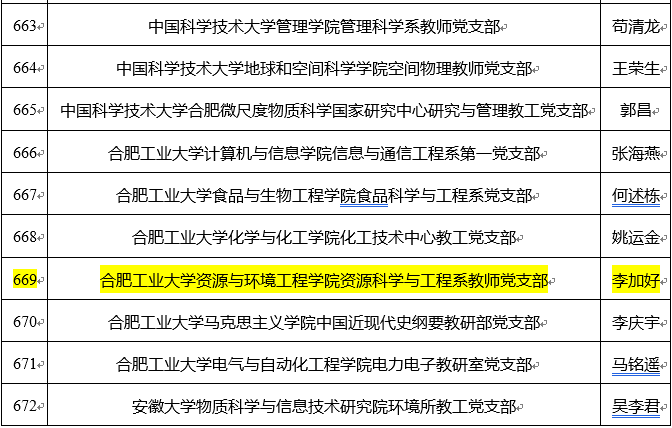 近日,教育部公布了高校“双带头人”教师党支部书记“强国行”专项行动团队遴选结果,我院资源科学与工程系教师党支部成功入选全国高校“双带头人”教师党支部书记“强国行”专项行动团队。这是我院首次获此国家级殊荣,也是学院党委积极推进党建质量创优、示范创建和党建业务融合发展的重要标志性成果。